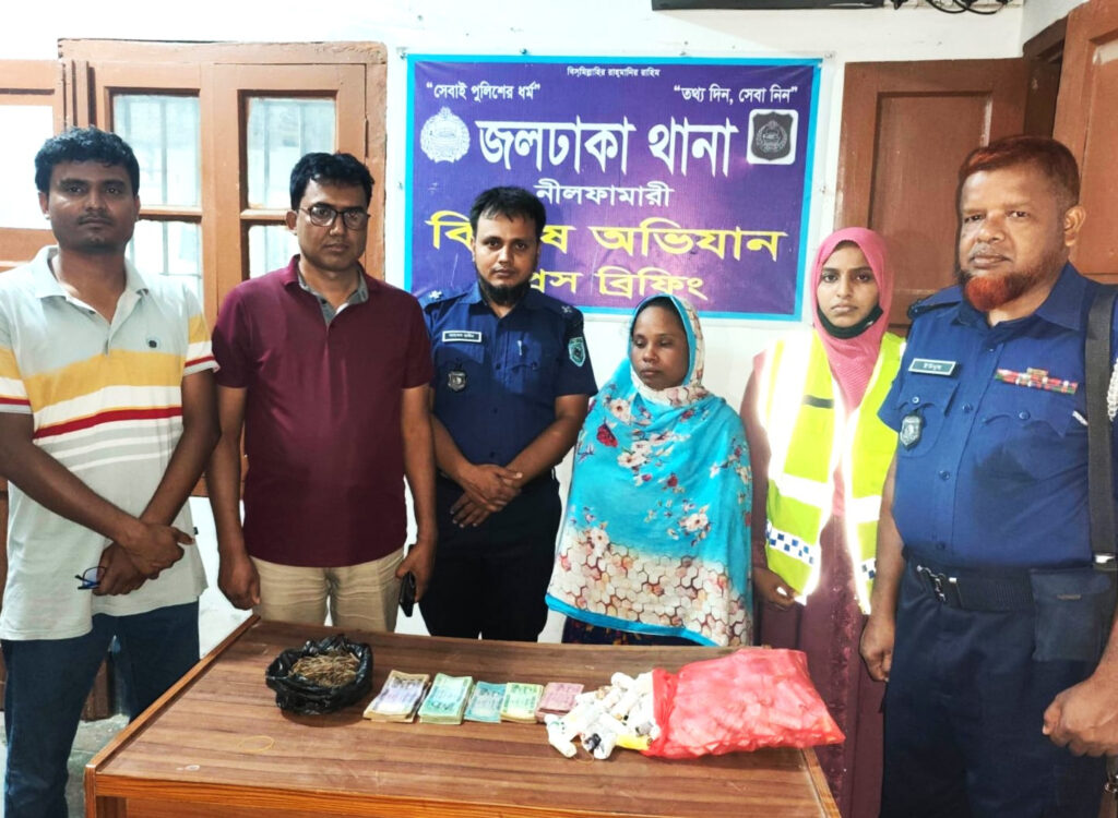 জলঢাকায় বিশেষ মাদকবিরোধী অভিযানে ১.৩২ কেজি গাঁজাসহ নারী মাদককারবারি গ্রেফতার