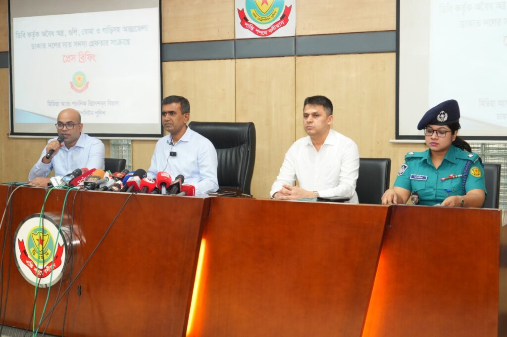 অবৈধ অস্ত্র, গুলি, বোমা ও গাড়িসহ আন্তঃজেলা ডাকাত দলের সাত সদস্যকে গ্রেফতার করেছে ডিবি