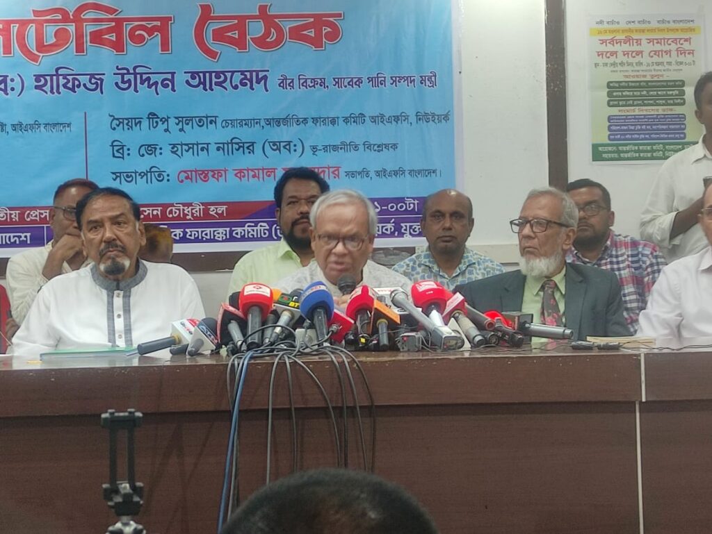 গোলটেবিল বৈঠকে বিএনপির স্থায়ী কমিটির সদস্য মেজর (অব.) হাফিজ উদ্দিন আহমেদসহ আরও অনেকে বক্তব্য রাখেন। তারা সবাই দেশের পানিসম্পদ, নদীব্যবস্থাপনা এবং পরিবেশ রক্ষায় একটি শক্ত অবস্থান গ্রহণের আহ্বান জানান।