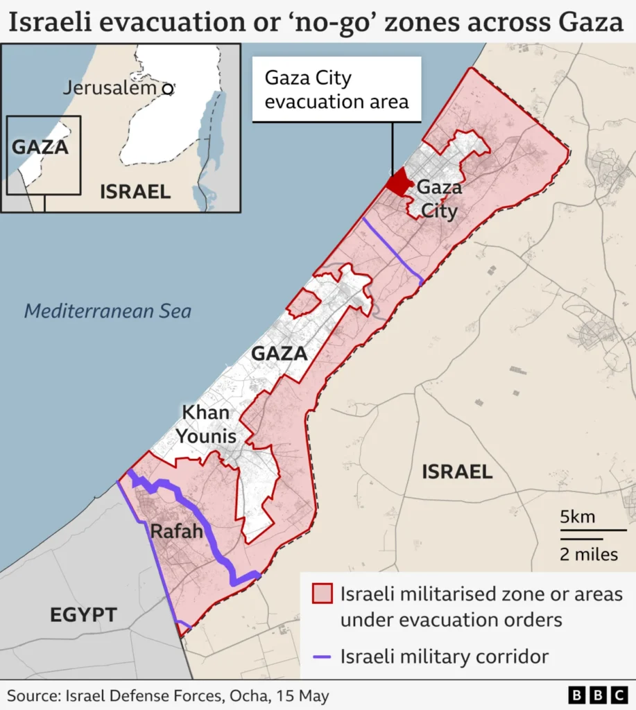 ইসরায়েল বলছে, হামাসের হাতে থাকা ৫৮ জন জিম্মি মুক্ত করতে চাপ প্রয়োগ করতেই এই অভিযান। তবে মানবিক সংস্থাগুলো অবরোধের কারণে গাজার ২১ লাখ মানুষের মধ্যে চরম দুর্ভিক্ষের আশঙ্কা প্রকাশ করেছে।