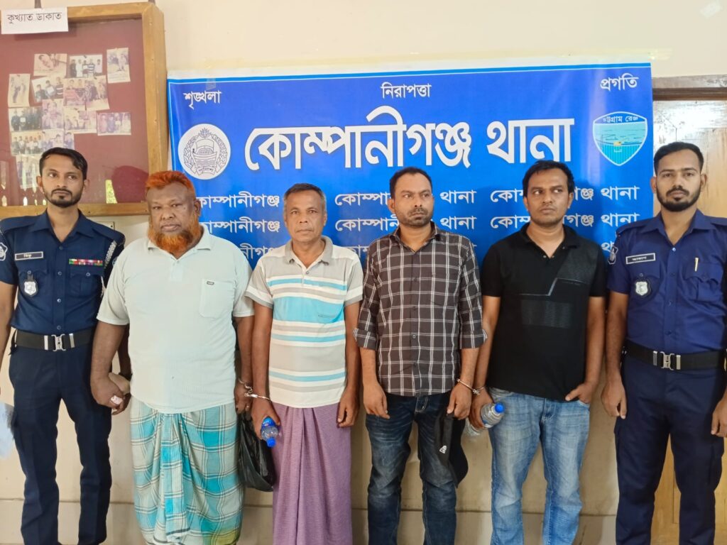 গ্রেফতারি পরোয়ানাভুক্ত চার আসামি কোম্পানীগঞ্জ থানা পুলিশের অভিযানে গ্রেফতার