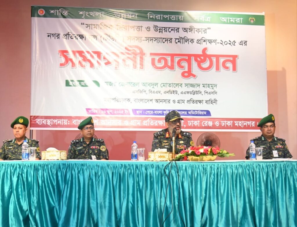 “সামাজিক নিরাপত্তা ও উন্নয়নের অঙ্গীকার” প্রতিপাদ্যে নগর প্রতিরক্ষা দলের মৌলিক প্রশিক্ষণ-২০২৫ এর সমাপনী অনুষ্ঠিত