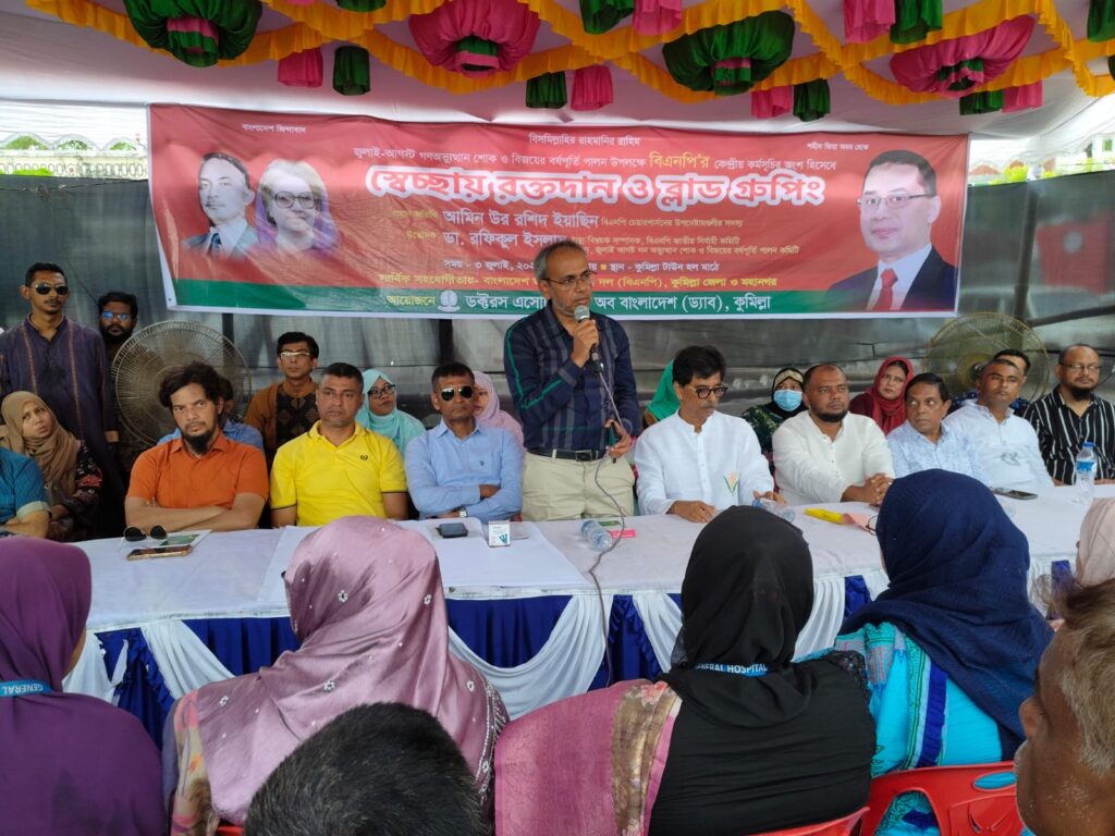 বৃহস্পতিবার কুমিল্লা টাউন হল মাঠে বিএনপি কেন্দ্র ঘোষিত কর্মসূচির অংশ হিসেবে ডক্টরস অ্যাসোসিয়েশন অব বাংলাদেশ (ড্যাব) কুমিল্লা শাখার আয়োজনে অনুষ্ঠিত জুলাই-অগাস্ট গণঅভ্যুত্থান ও বিজয়ের প্রথম বর্ষপূর্তি উপলক্ষে দিনব্যাপী স্বেচ্ছায় রক্তদান ও ব্লাড গ্রুপিং কর্মসূচির উদ্বোধনী অনুষ্ঠানে তিনি এ কথা বলেন।