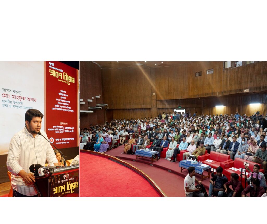 সোমবার (৭ জুলাই) রাজধানীর শাহবাগে বাংলাদেশ জাতীয় জাদুঘরের প্রধান মিলনায়তনে ‘শ্রাবণ বিদ্রোহ’ তথ্যচিত্রের প্রিমিয়ার শো-তে তিনি এ কথা বলেন। তথ্য ও সম্প্রচার মন্ত্রণালয়ের উদ্যোগে জুলাই গণঅভ্যুত্থানের ওপর নির্মিত এ তথ্যচিত্রের প্রদর্শনীর আয়োজন করা হয়।