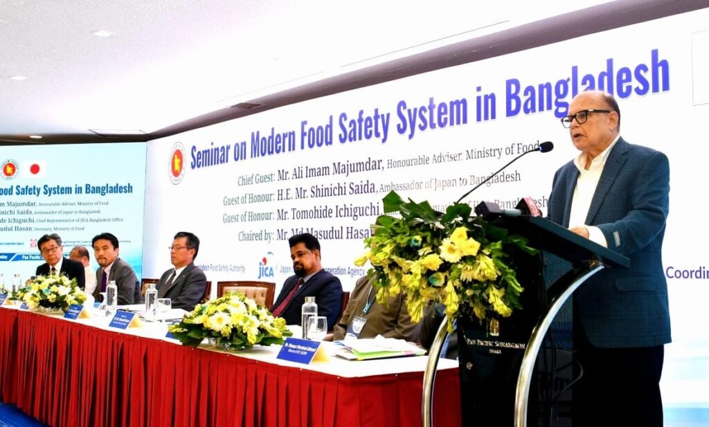 খাদ্য উপদেষ্টা মো. আলী ইমাম মজুমদার বলেছেন, “আধুনিক নিরাপদ খাদ্যব্যবস্থা গড়ে তোলার জন্য দক্ষ মানবসম্পদ অপরিহার্য। পাশাপাশি প্রয়োজন মানসম্মত খাদ্য পরীক্ষাগার।” তিনি জানান, জাপান সরকার ও জাইকার সহায়তায় ঢাকায় একটি আধুনিক ফুড সেফটি ল্যাবরেটরি স্থাপন করা হচ্ছে।