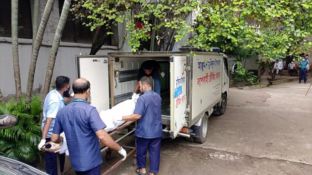 এসময় মর্গে উপস্থিত ছিলেন ডিএমপির যুগ্ম পুলিশ কমিশনার (ক্রাইম) ফারুক হোসেন, রমনা জোনের ডিসি মাসুদ আলম, শাহবাগ থানার ওসি মো. খালিদ মুনসুর এবং ঢাকা মেডিকেল কলেজের ফরেনসিক বিভাগের প্রধান অধ্যাপক ডা. কাজী গোলাম মোখলেছুর রহমান। আঞ্জুমান মুফিদুল ইসলামের পক্ষ থেকে মরদেহ গ্রহণ করেন দাফন সেবা কর্মকর্তা মো. কামরুল আহমেদ।