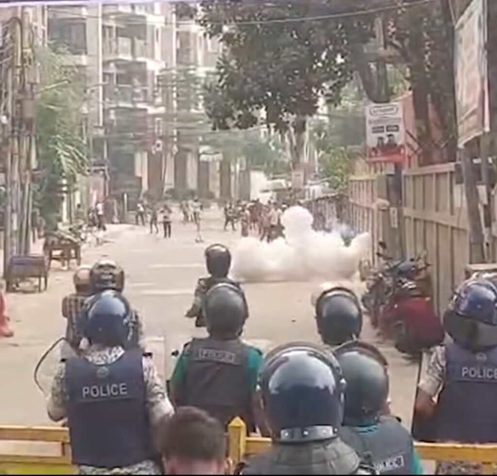 পুলিশ-বিক্ষোভকারীর মুখোমুখি সংঘর্ষ
